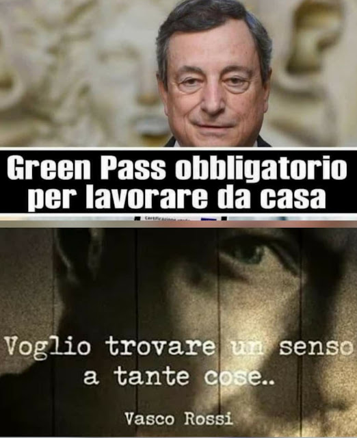 Questo è poco ma sicuro: il governo segue un percorso stabiliro ignorando del tutto la sovranità popolare, inoltre, coloro che non protestano e che acconsentono a questa dittatura sanitaria sono per lo più sviati dalla propaganda in TV e/o mal motivati nel proprio intimo potendo pure esser sviati da vari tipi di ragionamento comune, vuoto e non scientifico.